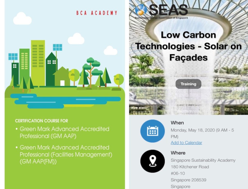 Upcoming professional trainings 2020 on Solar Architecture with Building Counstruction Authority Academy (BCAA) and Sustainable Energy Association of Singapore (SEAS).